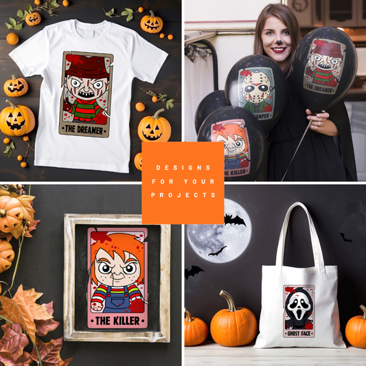 Tarot Cards Horror Characters Bundle SVG - Halloween Scary Movie Clipart - Horror Friends Svg - Horror Movie PNG Designs - Cricut & Silhouette Vector Cut Files